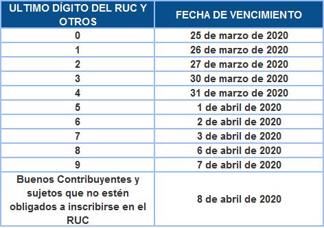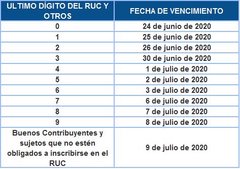 Adicionalmente, una persona natural que haya obtenido rentas por primera categoría, segunda categoría, cuarta categoría y/o quinta categoría que sumadas no superen 5000 UIT (S/ 21,000,000 soles) podrán utilizar el cronograma modificado.